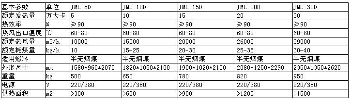 JML-D型系列溫室全專用自動(dòng)燃煤熱風(fēng)機(jī)技術(shù)數(shù)據(jù)